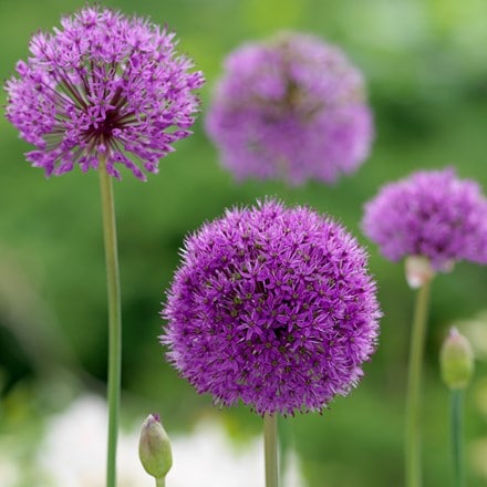 Alliums are the best choice for a summer bulb collection. With their large purple round heads, they are perfect for pollinators. The shades of purple allium bulb collection will add colour and structure in late spring and early summer. Plus, if you leave the heads to dry, they will add interest well into late autumn.